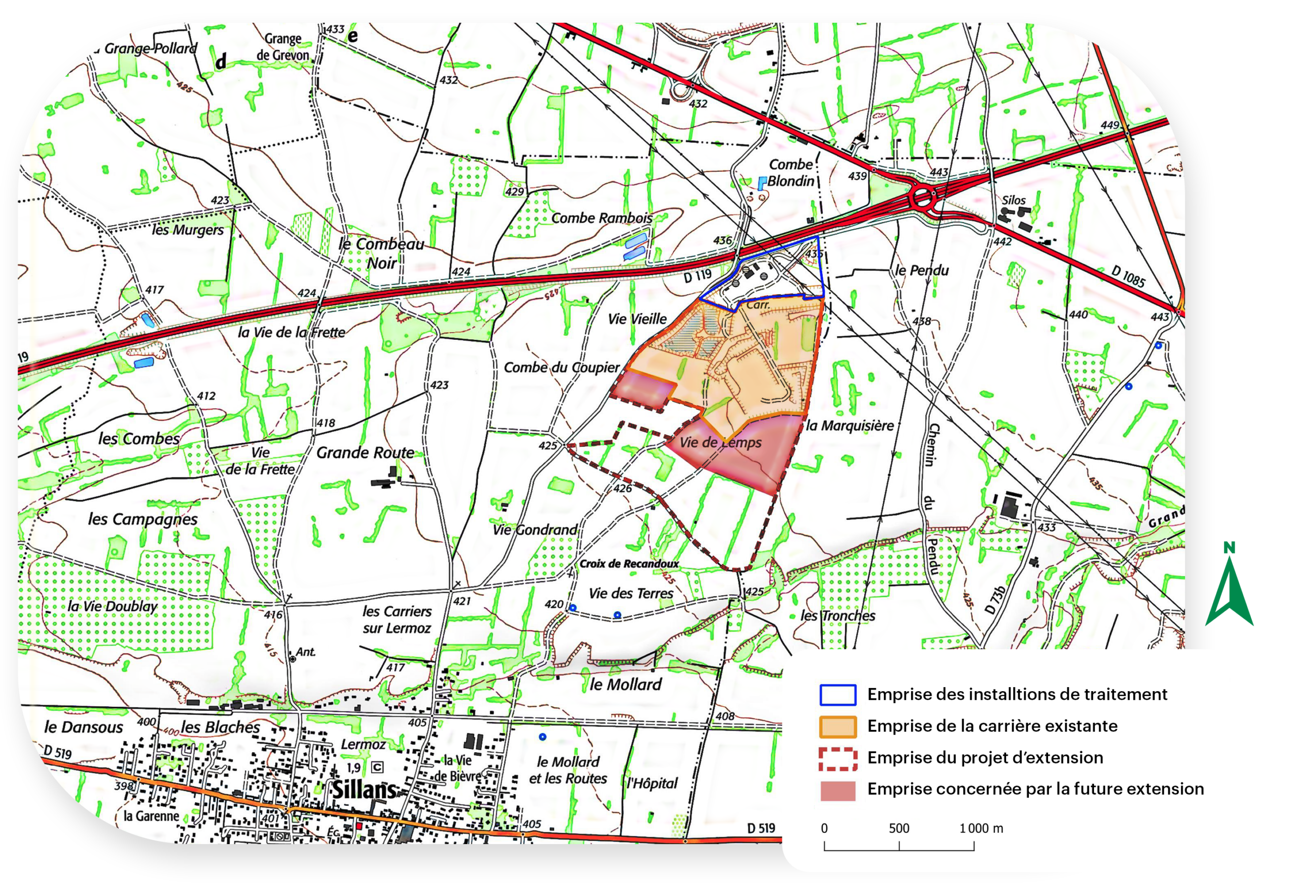 - Maintien de l’extraction et des installations de traitement à distance des habitations, réduisant en particulier les nuisances liées au transport grâce à une connexion directe avec la 2×2 voies (Axe de Bièvre) ;
